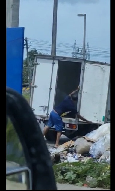 En un video enviado a esta redacción, se observa una persona desmontarse de un camión y sacar desperdicios para tirarlos en una esquina.