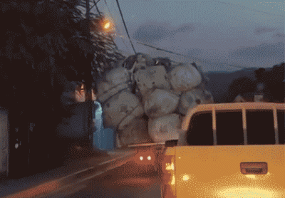 El camión de color blanco que se desplazaba por la vía pública sin placa, gomas lizas y con una carga exagerada que amenazaba con caerse, fue detenido próximo a la estación de combustible del kilómetro 2 de la carretera Padre Billini.