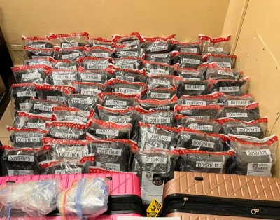 Agrega que iniciado el protocolo y en presencia de un fiscal, se procedió a abrir los equipajes, (tres maletas) procedentes de Nueva Jersey, Estados Unidos, ocupando en su interior, un total de 118 paquetes de marihuana, con un peso preliminar de 134 libras.