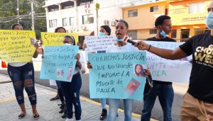EL NUEVO DIARIO, SANTO DOMINGO.- A propósito de conmemorarse este jueves el Día de la No Violencia contra la Mujer, familiares de Paola Castillo, quien falleció el 22 de agosto de 2021 tras recibir varias puñaladas por parte de un hombre, en el Ensanche Espaillat en Santo Domingo Oeste, protestan frente al Palacio de Justicia de Ciudad Nueva, en el Distrito Nacional.