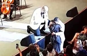 EL NUEVO DIARIO, SANTO DOMINGO. – El pasado sábado mientras se llevaba a cabo el concierto del cantautor colombiano, Santiago Cruz junto a la Orqueta Sinfónica Naciona, una pareja que se encontraban en primera fila disfrutando de la música del artista, realizaron un hermoso acto que pudo presenciar todo el público que se dio cita a la sala Carlos Piantini, del Teatro Nacional.