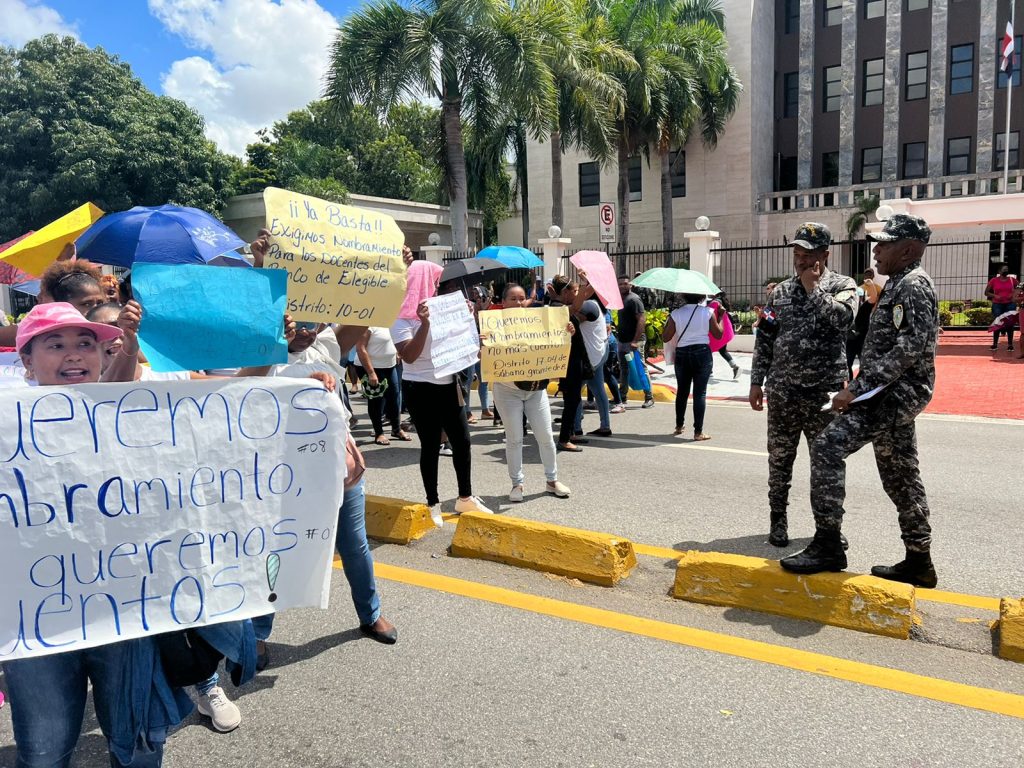 EL NUEVO DIARIO, SANTO DOMINGO.- Maestros diferentes distritos educativos protestan este viernes frente a la sede del Ministerio de Educación (Minerd), en demanda de que sean nombrados tras haber aprobado Concurso de Oposición.
