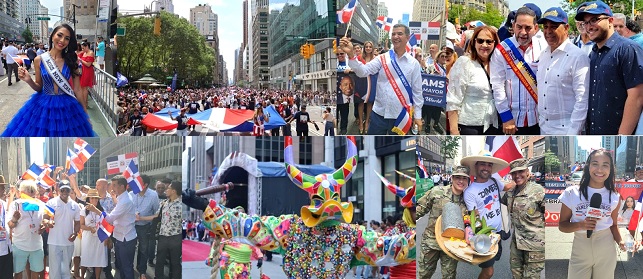 EL NUEVO DIARIO, NUEVA YORK.- Decenas de miles de dominicanos asistieron este domingo por cinco horas (11:00 am a 4:00 pm) al “Desfile Dominicano en Manhattan (Dominican Day Parade) a lo largo de la sexta avenida, desde la calle 36 hasta la 54 en Manhattan, con la asistencia de la gobernadora del estado Kathy Hockul y el senador federal Chuck Schumer.