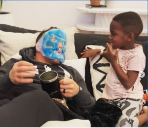 En un jocoso video colgado en su cuenta de Instagram, Chandler se ve acostado en un sillón junto a su hijo, al cual le explica las razones de por qué tiene que usar la máscara.