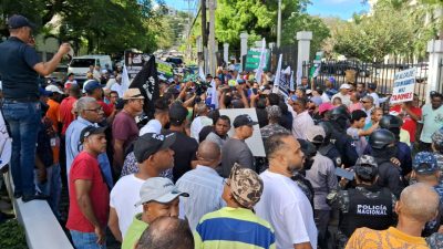 EL NUEVO DIARIO, SANTIAGO.- Choferes de concho de diferentes rutas, protestaron este jueves, frente al ayuntamiento de Santiago, en demanda de que no entre en funcionamiento la nueva ruta de concho S.O., que estaría operando en Cienfuegos.