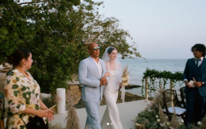 Allí se puede a Diesel emocionado caminando con ella. La íntima ceremonia, realizada en la playa, fue en República Dominicana, según la exclusiva de la revista Vogue.