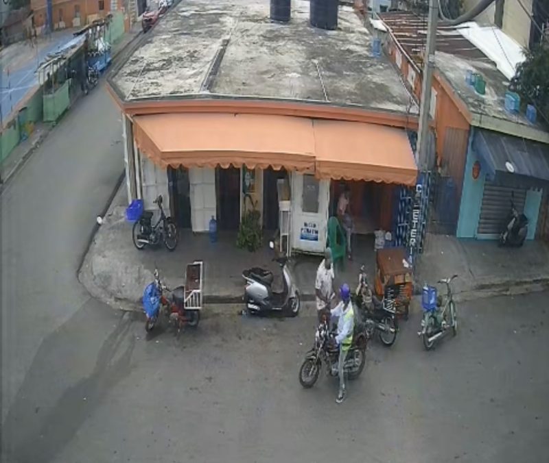 El individuo, que quedó captado en cámaras de vigilancia, conducía una motocicleta tipo CG de color negro, vestía un chaleco reflectante y un casco morado.