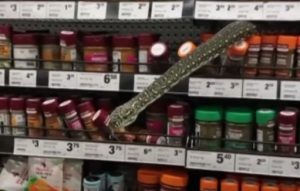 EL NUEVO DIARIO, REDACCIÓN DIGITAL.- Los clientes de un supermercado se llevaron el susto de sus vidas luego de que se encontraron a una serpiente pitón colgando de uno de los anaqueles o estantes, ubicado en el pasillo donde se muestran las especias para cocinar, un hecho ocurrido en la ciudad de Sídney, en Australia.