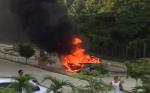 EL NUEVO DIARIO, SANTO DOMINGO. – El cilindro de gas de un carro Toyota Corola 1987 explotó incendiándose el vehículo en un residencial.