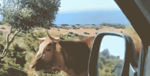 Asimismo, se ve cómo la vaca indicó girando su cabeza el camino correcto hacia la playa al conductor al conductor.